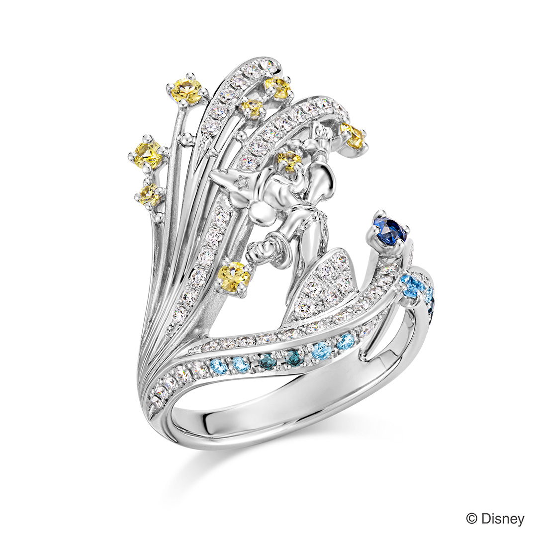 夜空を指す「ミッキーマウス」の象徴的な姿をモチーフにしたリング。