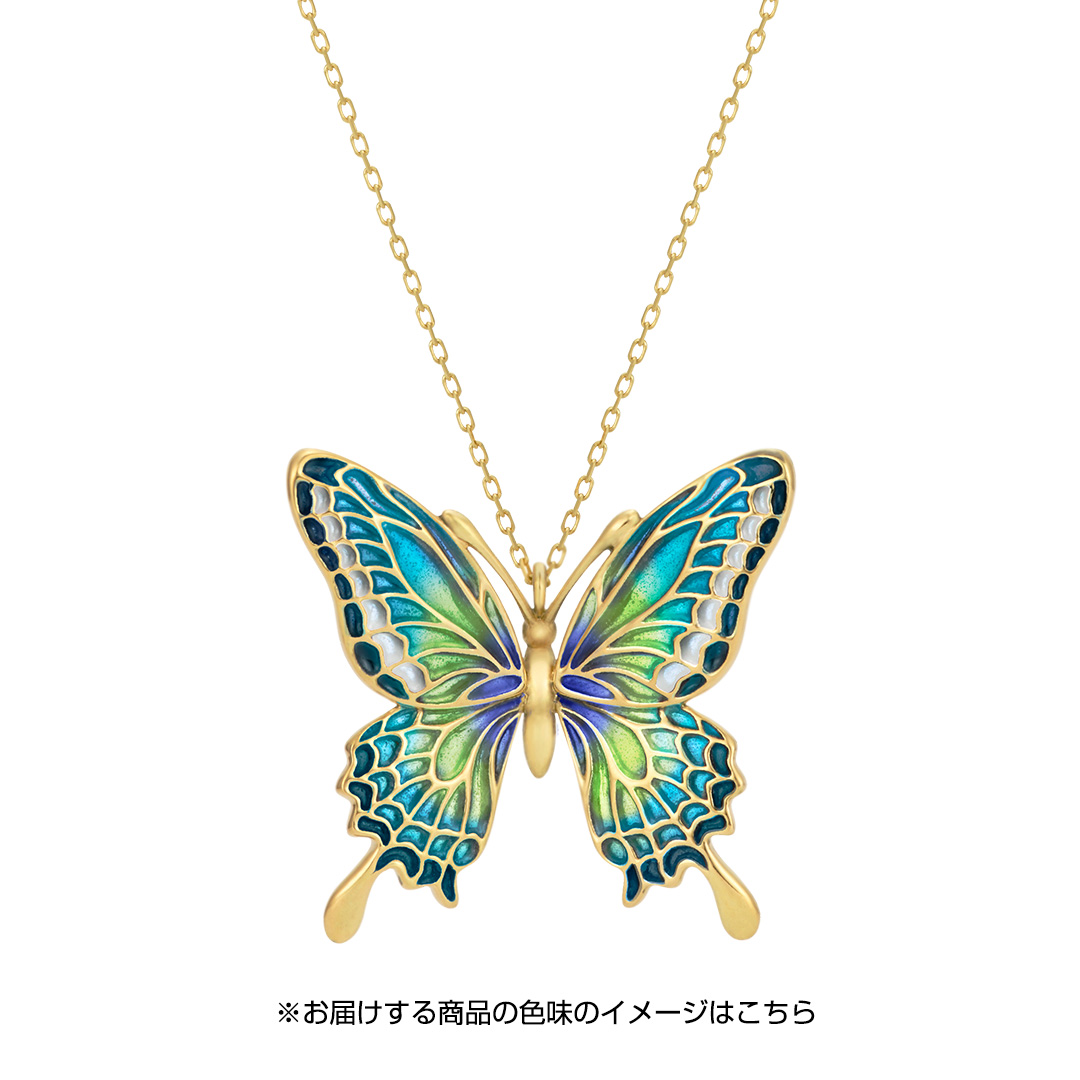 さなぎから華麗に変身する蝶は、変化・成長の象徴。さらに成長し輝き続けるあなたへ。 職人の手作業により生み出される、色とりどりの「七宝焼き」。 それぞれの色合いに、味わい深い個性があります。美しく光を通すその姿は、まるでステンドグラスのよう。 七宝とは釉薬(ガラスの粉等)をのせて、炉で焼成して表現する技法のこと。 色あせず宝石のような美しさを持つことから古くから伝統工芸・技法として愛されています。